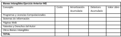 Se deberá presentar el detalle de los bienes intangibles del Administrador del Fondo Autónomo de Protección Previsional, de acuerdo con el siguiente cuadro. La información deberá presentarse en miles de pesos y corresponde al período comprendido entre el 1 de enero y la fecha de corte de los estados financieros.