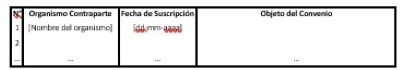 Se deberá presentar el detalle de los convenios suscritos con organismos nacionales o internacionales o extranjeros, sean estos públicos o privados, por el Administrador del Fondo Autónomo de Protección Previsional de acuerdo con lo establecido en el numeral 13 del artículo 28 de la Ley N° 21.735. La información incluye la individualización del organismo con el cual se suscribe el convenio, la fecha de suscripción y el objeto de este.