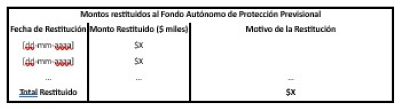 Adicionalmente deberá presentarse los recursos restituidos al FAPP durante el período reportado, indicando el monto, la fecha de la devolución y el motivo correspondiente: