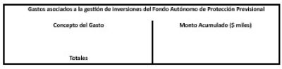 Deberá informar todos los conceptos de gastos asociados a la gestión de las inversiones de los recursos del Fondo Autónomo de Protección Previsional: