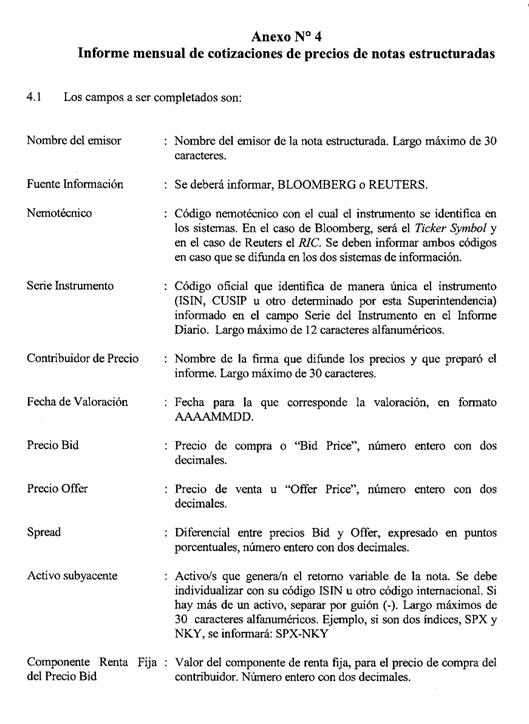 Anexo Nº 4 Informe Mensual de Cotizaciones de Precios de Notas Estructuradas