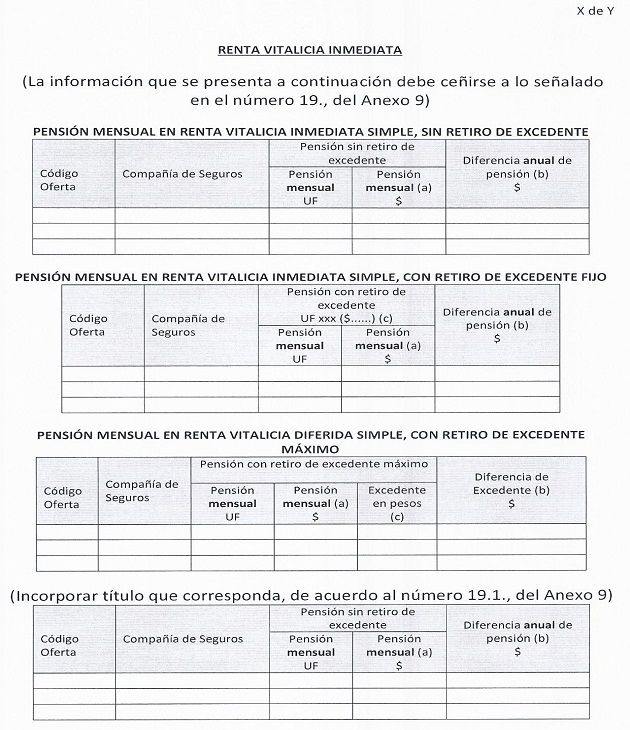 Nota de actualización: Este anexo fue modificado por la Norma de Carácter General Nº43, de fecha 7 de mayo de 2012. Posteriormente, fue reemplazado por la Norma de Carácter General Nº 89, de fecha 3 de julio de 2013. Posteriormente, este anexo fue modificado por la Norma de Carácter General Nº 192, de fecha 17 de enero de 2017. Posteriormente, este anexo fue reemplazado por la Norma de Carácter General N° 237, de fecha 4 de enero de 2019.Posteriormente, este anexo fue modificado por la Norma de Carácter General Nº 296, de fecha 28 de marzo de 2022.