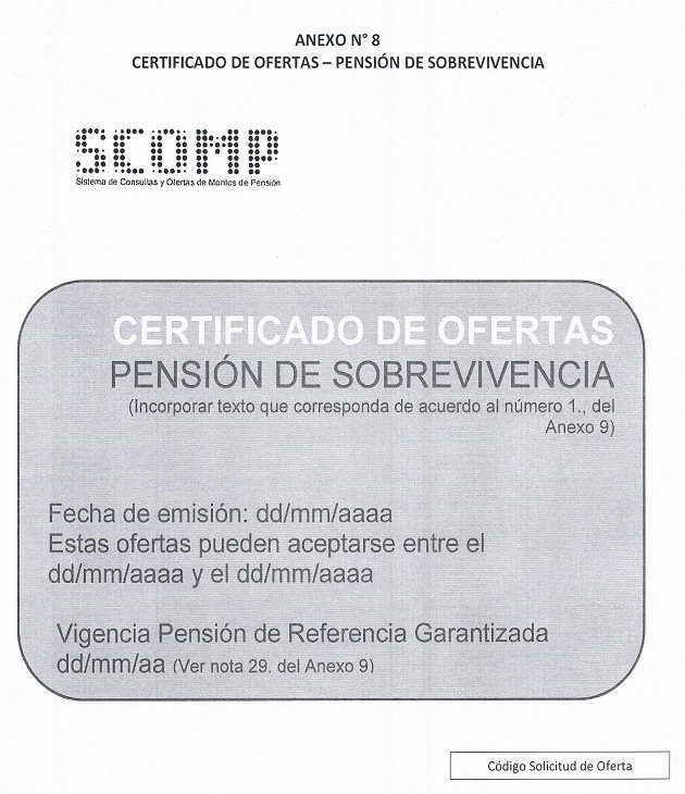 Anexo N° 8 Certificado de Ofertas - Pensión de Sobrevivencia