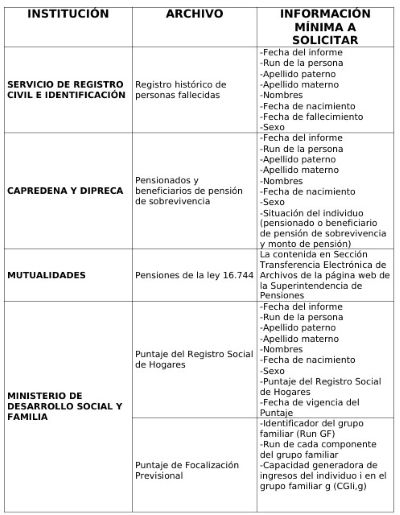 Recepcionada dicha información, el IPS deberá formar una base de datos que contenga un archivo único por individuo con la totalidad de su información, que le permita determinar si son potencialmente elegibles o no para PBS o APS. Respecto de todos aquellos que resulten ser potencialmente elegibles para algún beneficio, el IPS deberá consultar a DIPRECA y CAPREDENA si tienen o no la calidad de imponentes de dichos regímenes.