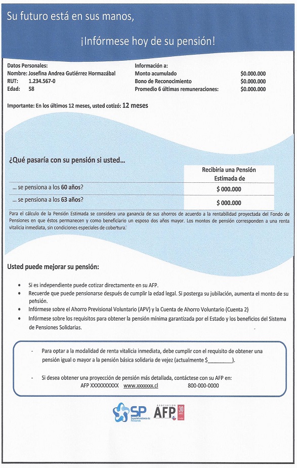Anexo Nº 5 Información para Afiliados que le faltan menos de 10 años para cumplir la edad legal para pensionarse - Ejemplo de anexo de cartola de proyección de pensión