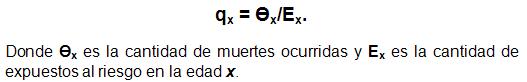 Este ratio corresponde a la probabilidad "bruta" que una persona que acaba de cumplir x años de edad, no viva un año más.