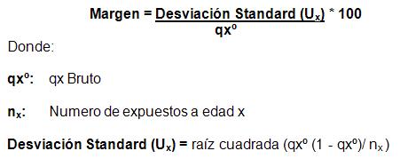 Las probabilidades brutas obtenidas se ajustaron con el método de Whittaker Henderson Tipo B, que consiste en una combinación de regresión lineal con el método Bayesiano de ajuste. Su fórmula se puede definir de la siguiente manera: