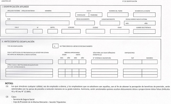 - Afiliación a una A.F.P.