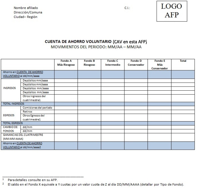 Anexo Nº 2 Cartola Cuatrimestral de la Cuenta de Ahorro Voluntario