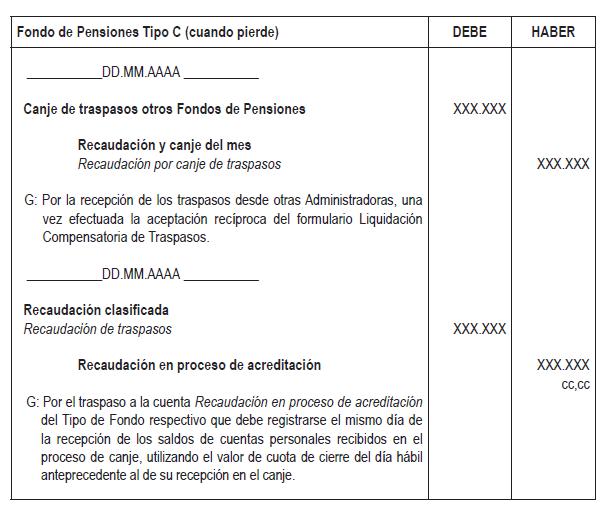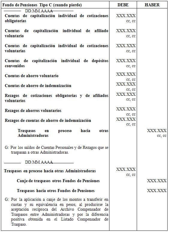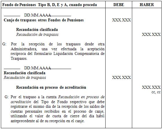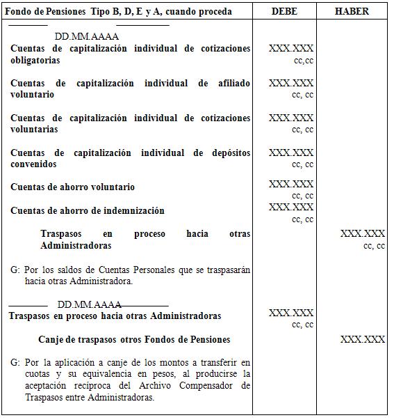 Libro IV Fondos de Pensiones y Regulación de Conflictos de Intereses > Título VII Contabilidad de los Fondos de Pensiones y de las Administradoras de Fondos de Pensiones > A. Normas Contables > Anexos > Anexo Nº 6 Secuencia Contable de los Traspasos de Saldos entre Administradoras