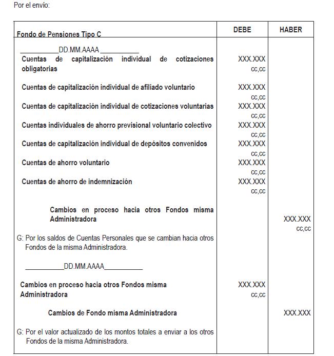 Libro IV Fondos de Pensiones y Regulación de Conflictos de Intereses > Título VII Contabilidad de los Fondos de Pensiones y de las Administradoras de Fondos de Pensiones > A. Normas Contables > Anexos > Anexo Nº 7 Secuencia Contable de los Cambios, Asignaciones, Distribuciones de Saldos entre Fondos de la misma Administradora