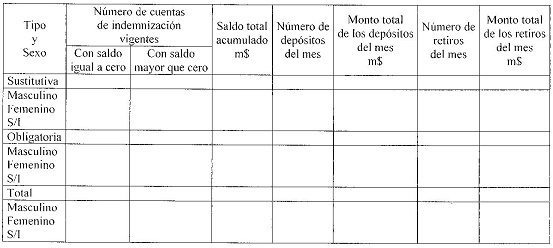 Cuadro N° 7 Número de cuentas de indemnización vigentes, saldo total acumulado en las cuentas, número y monto de los depósitos y retiros del mes, por tipo y sexo