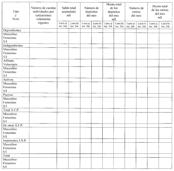 Cuadro N° 13e Número de cuentas de capitalizacion individual voluntaria vigentes Fondo Tipo E, saldo total acumulado, número y monto de depósitos y retiros del mes por tipo y sexo