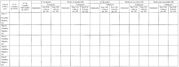 Cuadro N° 15 Número de contratos, cuentas individuales de ahorro previsonal colectivo vigentes, aportes, retiros y saldo total acumulado por tipo de fondo y sexo