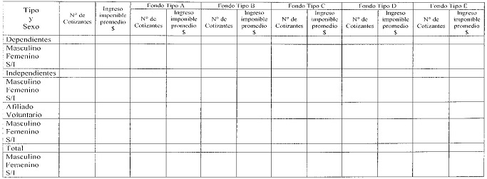 Cuadro N° 4 Número de cotizantes e ingreso imponible promedio según fondo, por tipo y sexo