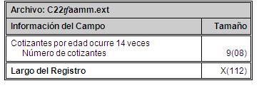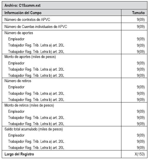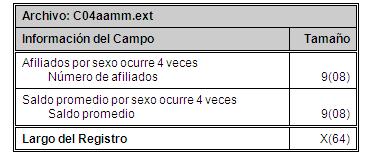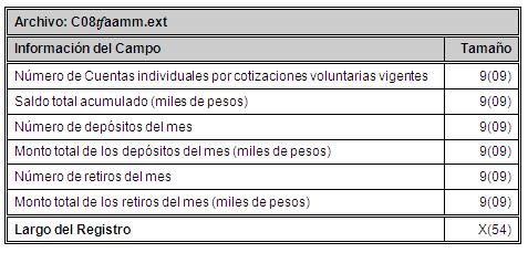 El registro descrito debe informarse en este archivo para cada uno de los tipos de Fondo y Sexo que se describe en el punto 2.11.