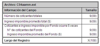El número de cotizantes del Fondo y el ingreso imponible promedio del Fondo debe incluirse para cada uno de los tipos de Fondos (A, B, C, D y E), ordenados por tipo de Fondo. El registro descrito debe incluirse en este archivo para cada uno de los tipos de afiliados definidos en el punto 2.4.