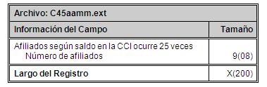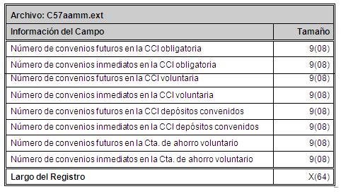El registro descrito debe informarse en este archivo para cada uno de los tipos de cuentas que se describe en el punto 2.6.