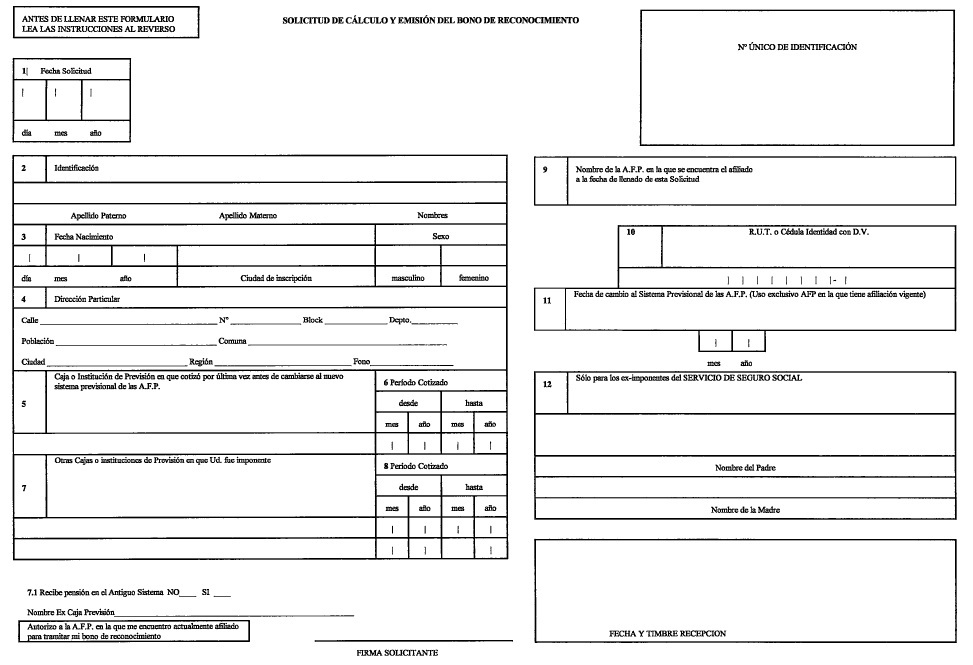 Anexo Nº 2 Solicitud de Cálculo y Emisión del Bono de Reconocimiento