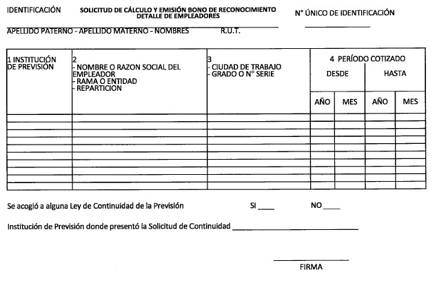 Anexo Nº 2A Solicitud de Cálculo y Emisión Bono de Reconocimiento. Detalle de Empleadores