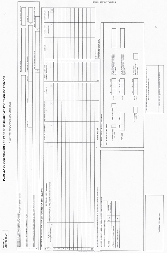 Nota de actualización: El formulario Planilla de Pago de Cotizaciones por Trabajos Pesados Declarados fue reemplazado por la Norma de Carácter General N° 202, de fecha 11 de septiembre de 2017.