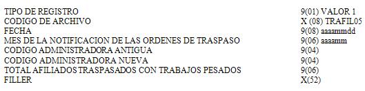 Anexo Nº 5 Archivo de Traspaso de afiliados con Trabajos Pesados (TRAFIL05)