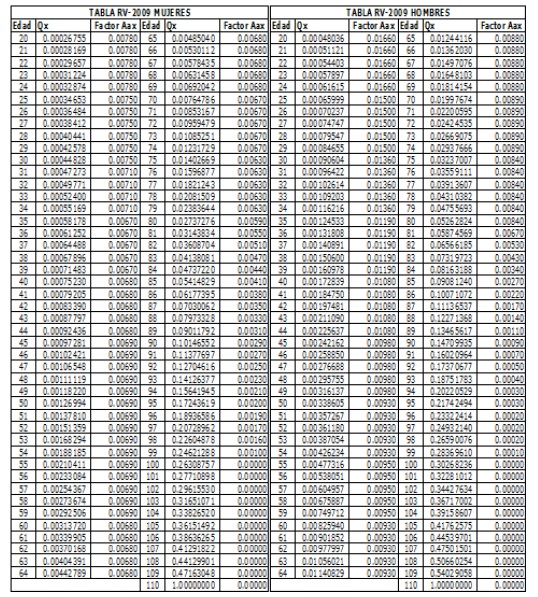 Anexo Nº 5 Tablas de mortalidad RV - 2009