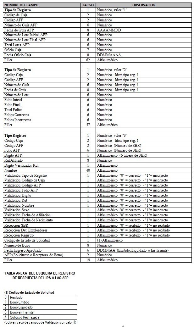 Anexo Nº 3A Especificaciones de Registro de Respuesta del IPS a las AFP