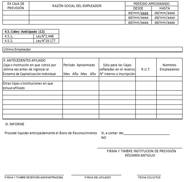 Anexo Nº 5 Solicitud de Trámites de Bono de Reconocimiento