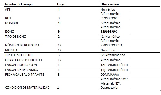 Anexo Nº 10 Esquema de Registros a utilizar para las Solicitudes de Trámites de Bono de Reconocimiento que presenten las AFP al IPS