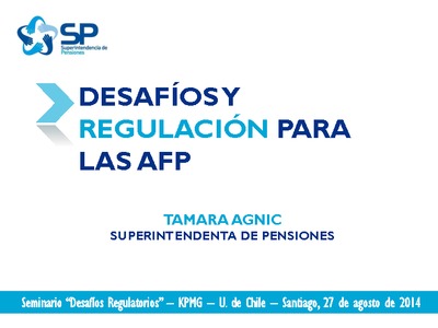 Exposición de la superintendenta de Pensiones, Tamara Agnic, en el Seminario "Desafíos Regulatorios" - KPMG - U. de Chile, 27 de agosto de 2014.